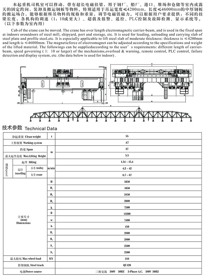 超長電磁掛梁橋式起重機